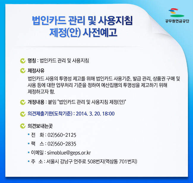 법인카드 관리 및 사용지침 제정(안) 사전예고