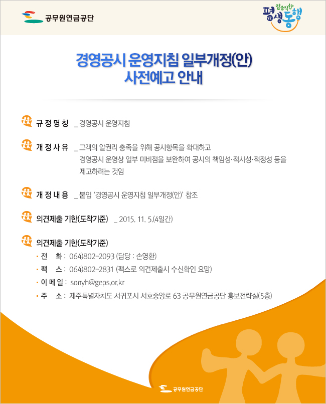 - 공무원연금공단에서 제작한 본 저작물은 '공공누리 제4유형-출처표시, 변경금지, 상업적 이용금지' 조건에 따라 이용 할 수 있습니다.