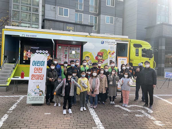 - 이번 안전한마당 활동에 참석한 공단 광주지부 임직원은 전남 무안군에 위치한 무안남악상록아파트를 방문하여 무안소방서, 상록자원봉사단과 합동으로 아파트 어린이들에게 동영상 안전학습체험 등 안전사회 구현을 위해 안전한마당 행사를 실시했다.