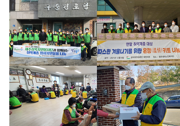 - 공단 황서종 이사장은 “코로나19 장기화로 우리 주변 소외이웃들의 고립감이 가중되고 있다. 이번 공단 임직원과 은퇴공무원 봉사자의 활동이 작은 불씨가 되어 지역사회에 따뜻한 온기를 불어넣고, 이웃들에게 행복한 연말을 선물해 드리길 바란다”고 말했다.li>
