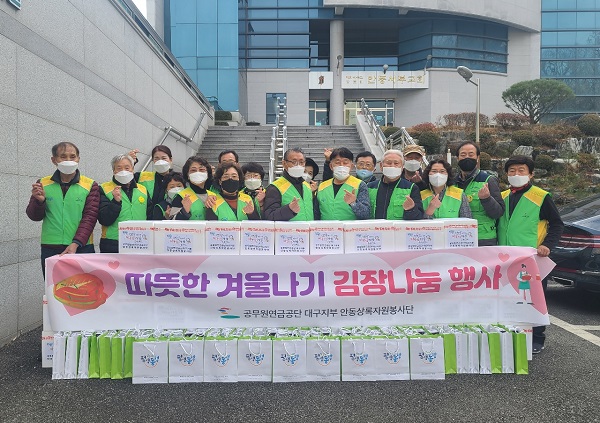 • 공무원연금공단(이사장 황서종) 대구지부는 9일 안동지역 내 소외된 홀몸노인을 위한 ‘따뜻한 겨울나기 김장나눔 봉사활동’을 펼쳤다.