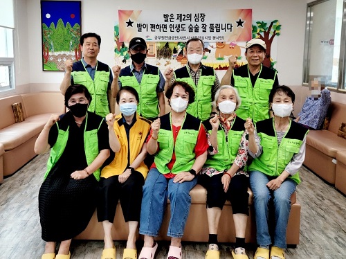 - 공단 부산지부는 어르신들의 치매예방을 목적으로 2017년에 사천상록건강지압봉사단을 결성하고, 봉사단이 결성된 그 해부터 꾸준히 ‘사랑원’에서 봉사활동을 펼쳐왔다. 하지만, 코로나19로 인해 지난 2년 동안 활동이 중단되었다가 최근 변경된 방역지침에 따라 대면봉사활동을 재개했다.